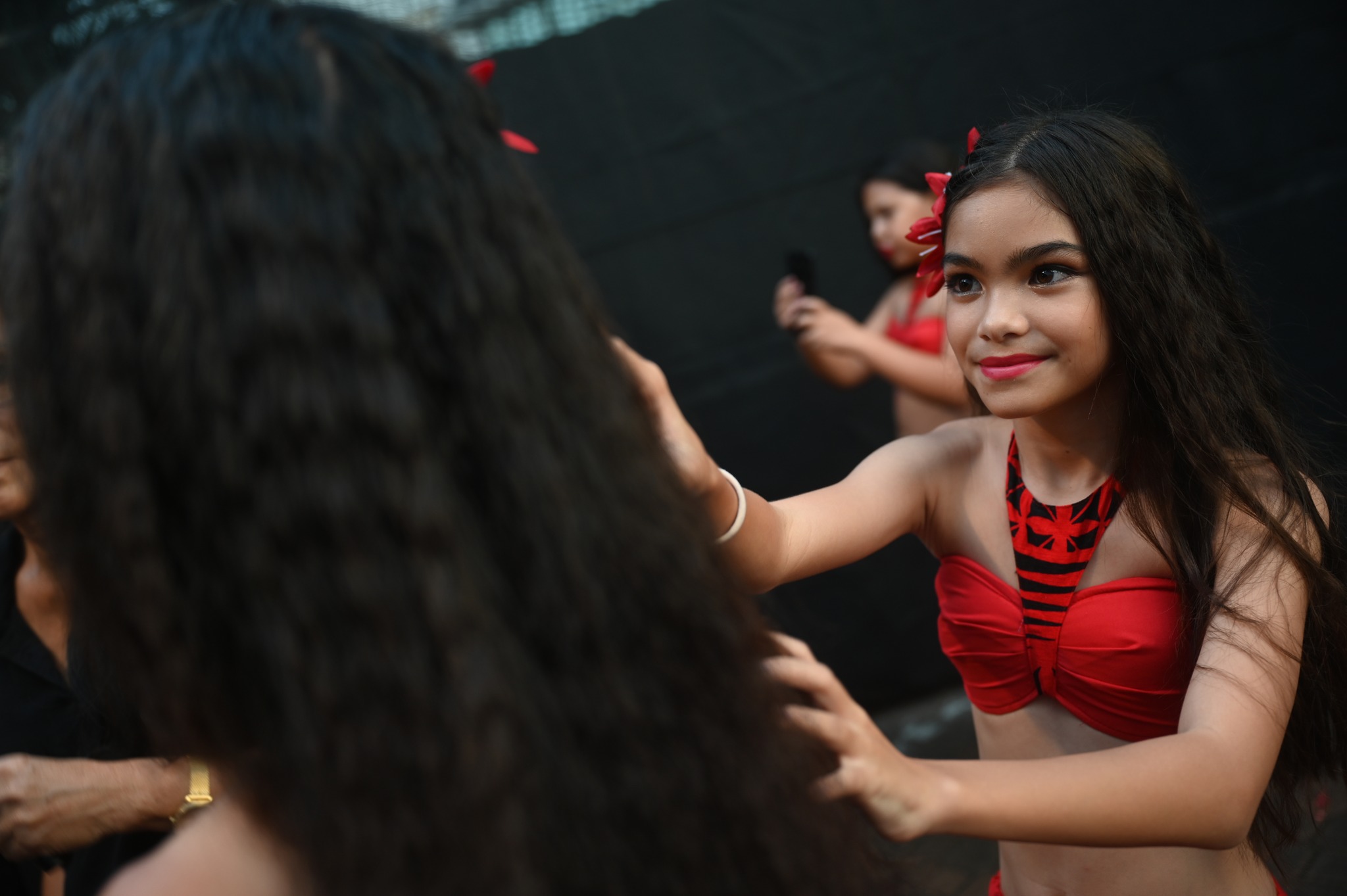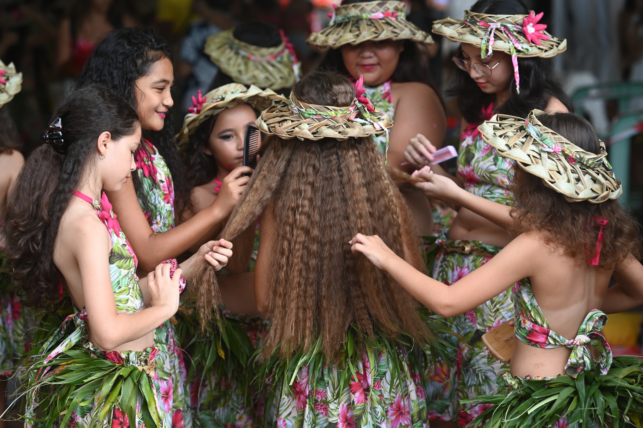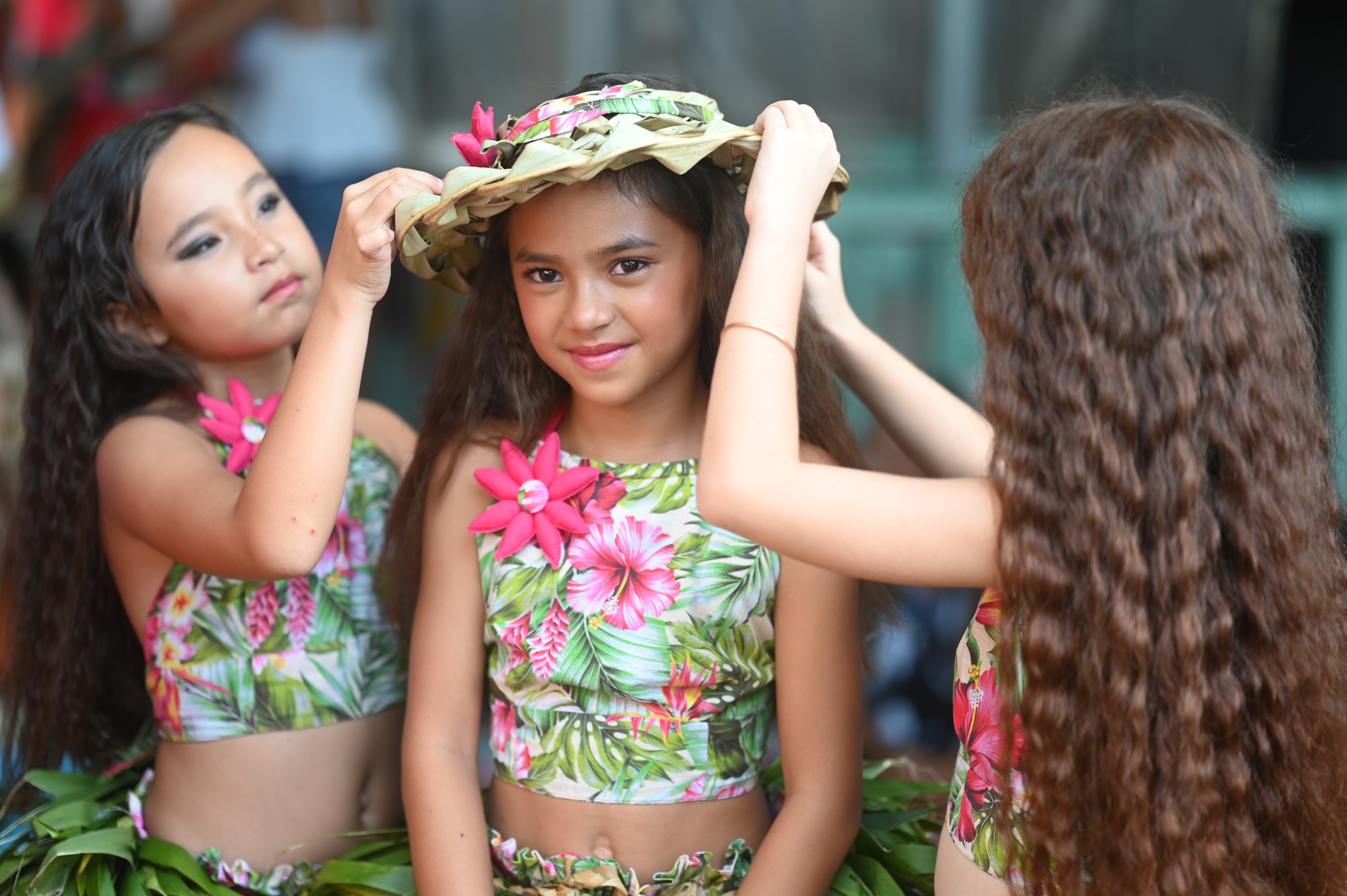 Catégorie: Costumes, Ecole de danse, Heiva des écoles de 'ori tahiti      Étiquettes : école, élèves, coulisses, danse, Heiva, spectacle, Ta'upiti ana'e, Tahiti, TFTN