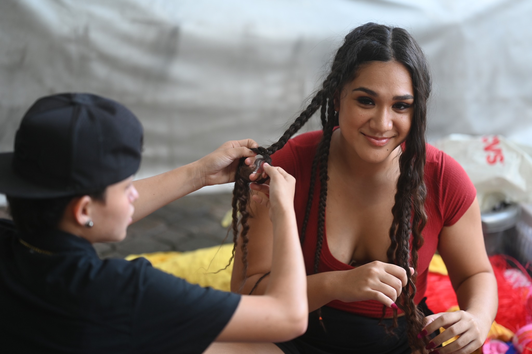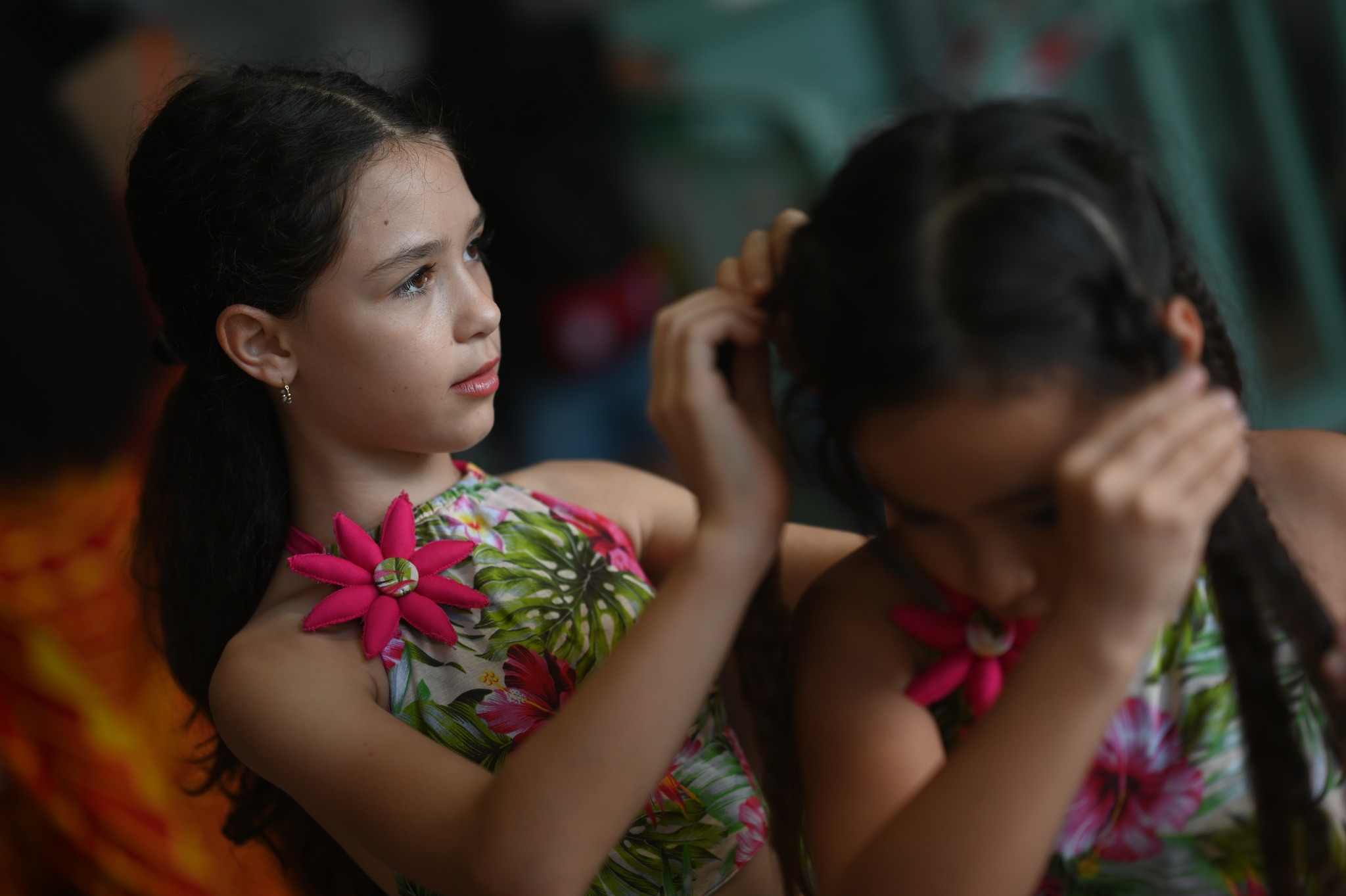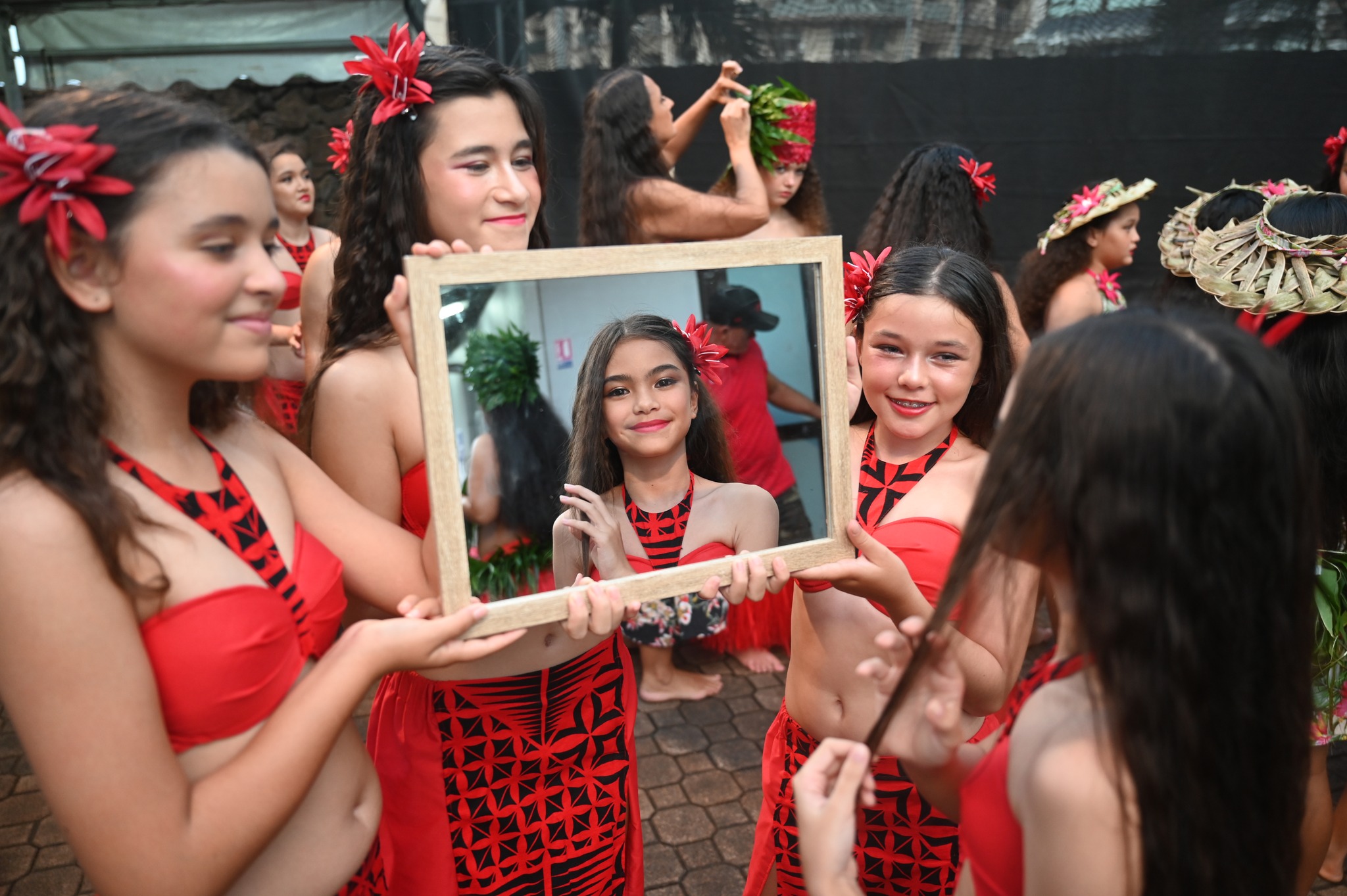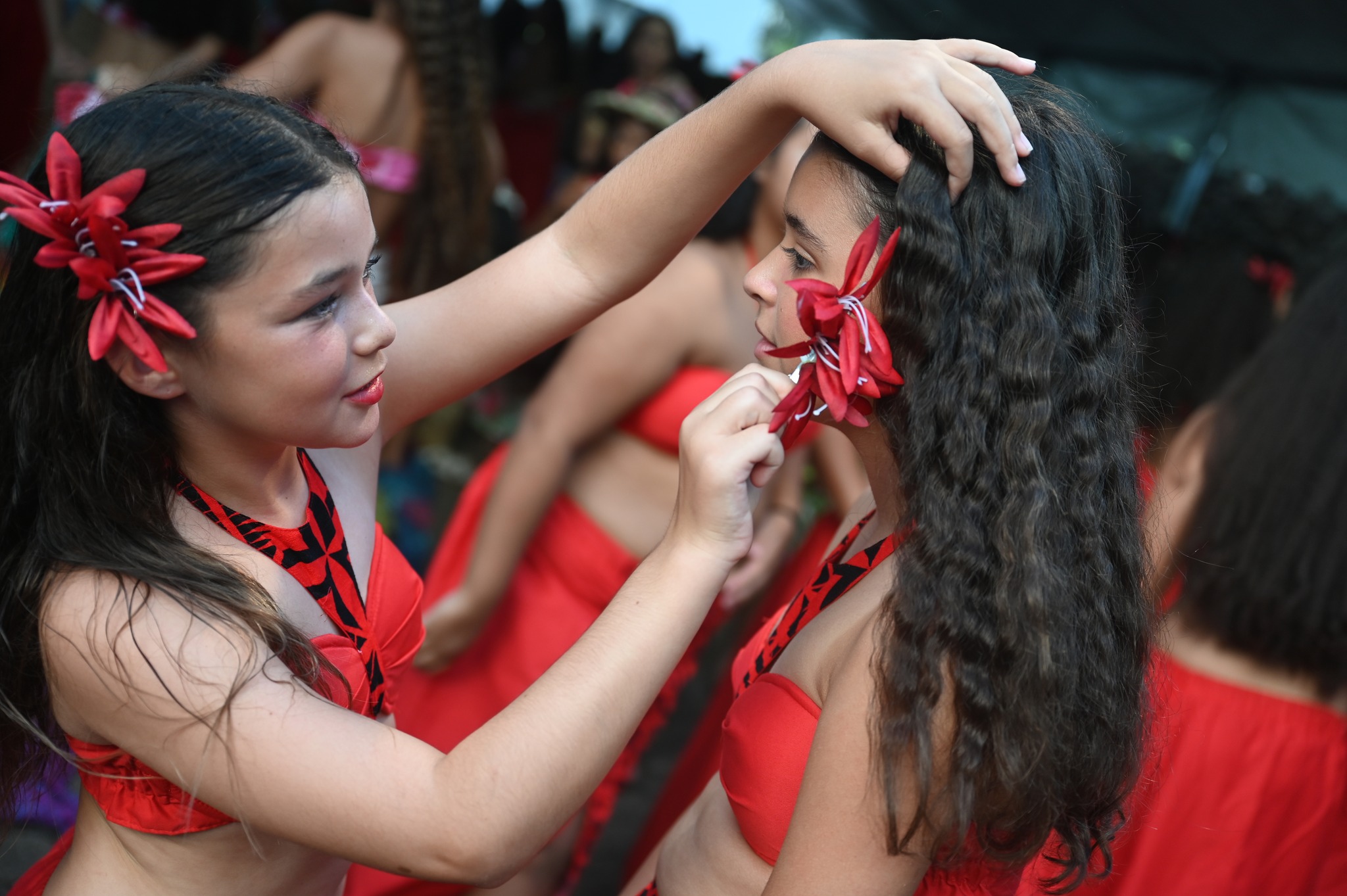Catégorie: Costumes, Ecole de danse, Heiva des écoles de 'ori tahiti      Étiquettes : école, élèves, coulisses, danse, Heiva, spectacle, Ta'upiti ana'e, Tahiti, TFTN